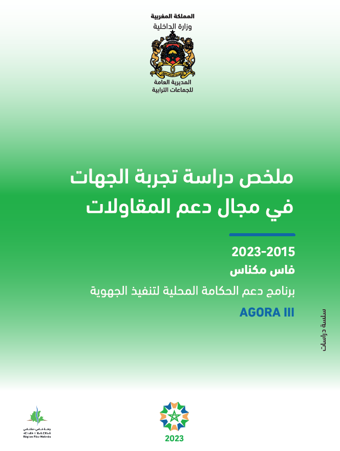 دراسة حول تجربة جهة فاس-مكناس في مجال دعم المقاولات (2015–2023)هذا الإصدار حلقة من سلسلة دراسات حول تجربة الجهات في مجال دعم المقاولات (2015–2023). وهو عبارة عن ملخص دراسة حول تجربة جهة فاس- مكناس في هذا المجال، حيث تقدم هذه الدراسة تقييما عاما للمبادرات المتخذة من طرف الجهة في مجال المواكبة الاقتصادية، قصد تعزيز الانسجام والأثر وتثمين المكتسبات. |