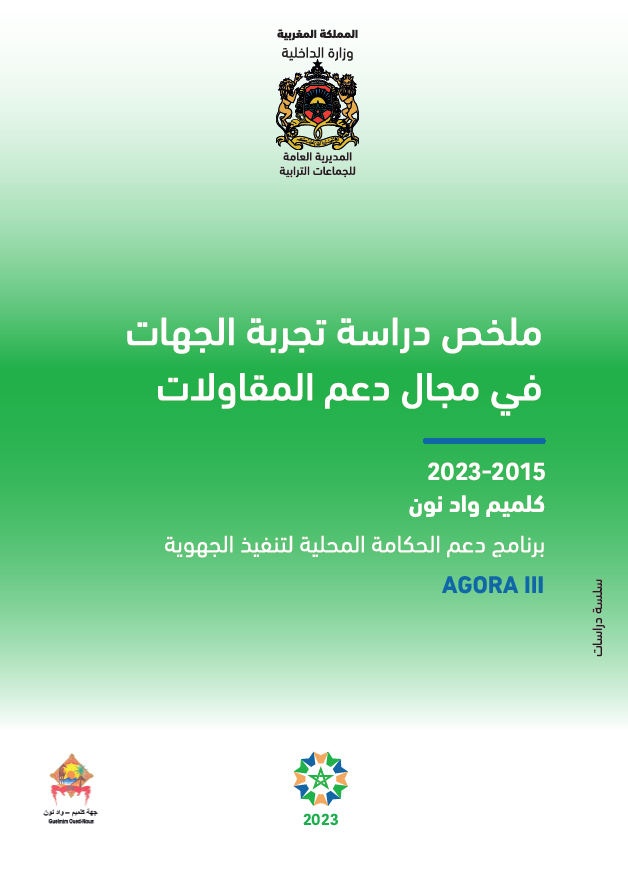 دراسة حول تجربة جهة كلميم- واد نون في مجال دعم المقاولات (2015–2023)هذا الإصدار حلقة من سلسلة دراسات حول تجربة الجهات في مجال دعم المقاولات (2015–2023). وهو عبارة عن ملخص دراسة حول تجربة جهة كلميم- واد نون في هذا المجال، حيث تقدم هذه الدراسة تقييما عاما للمبادرات المتخذة من طرف الجهة في مجال المواكبة الاقتصادية، قصد تعزيز الانسجام والأثر وتثمين المكتسبات. |