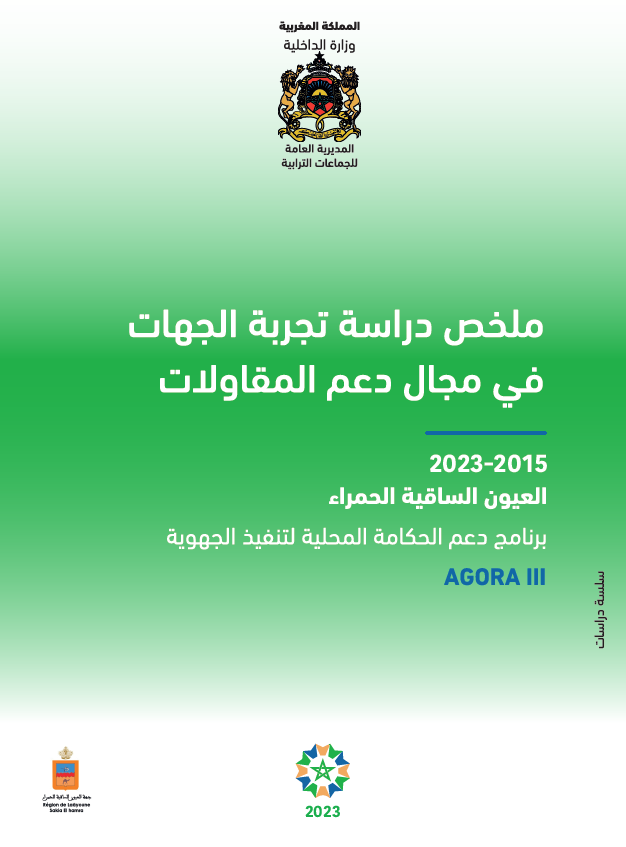 دراسة حول تجربة جهة العيون- الساقية الحمراء في مجال دعم المقاولات (2015–2023)هذا الإصدار حلقة من سلسلة دراسات حول تجربة الجهات في مجال دعم المقاولات (2015–2023). وهو عبارة عن ملخص دراسة حول تجربة جهة العيون- الساقية الحمراء في هذا المجال، حيث تقدم هذه الدراسة تقييما عاما للمبادرات المتخذة من طرف الجهة في مجال المواكبة الاقتصادية، قصد تعزيز الانسجام والأثر وتثمين المكتسبات. |