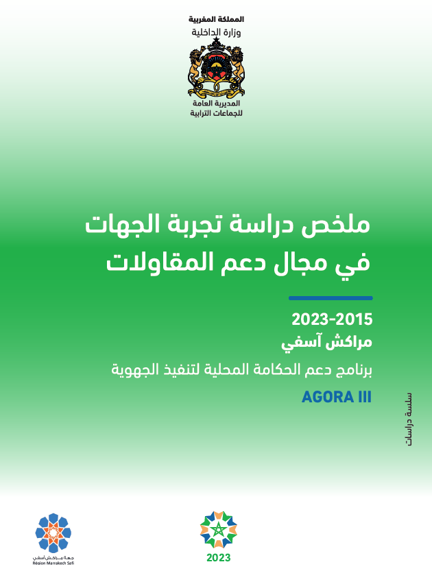 دراسة حول تجربة جهة مراكش- آسفي في مجال دعم المقاولات (2015–2023)هذا الإصدار حلقة من سلسلة دراسات حول تجربة الجهات في مجال دعم المقاولات (2015–2023). وهو عبارة عن ملخص دراسة حول تجربة جهة مراكش- آسفي في هذا المجال، حيث تقدم هذه الدراسة تقييما عاما للمبادرات المتخذة من طرف الجهة في مجال المواكبة الاقتصادية، قصد تعزيز الانسجام والأثر وتثمين المكتسبات. |