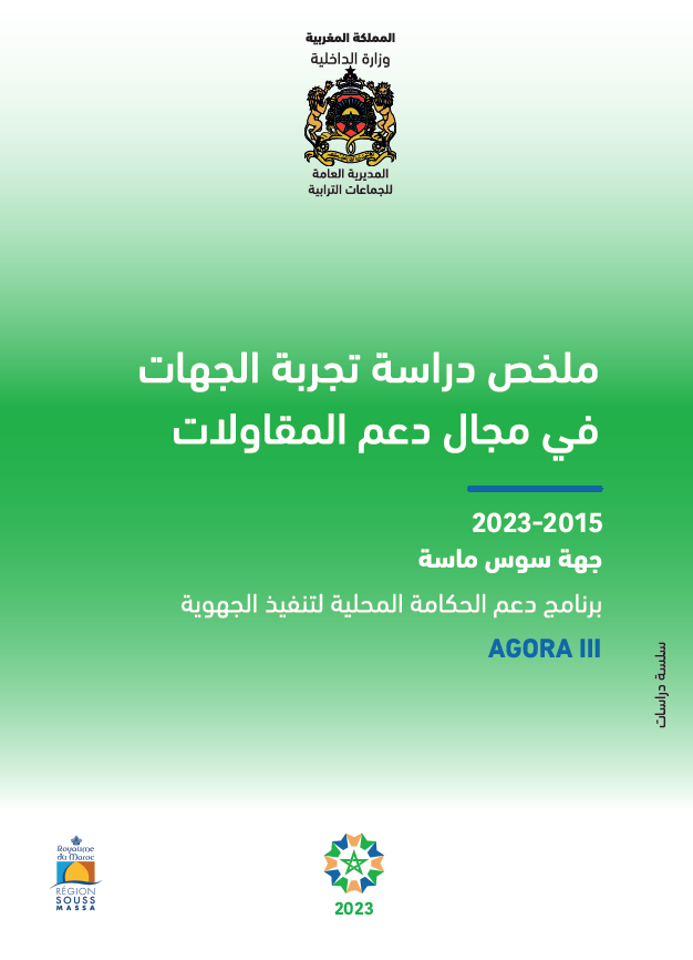 دراسة حول تجربة جهة سوس- ماسة في مجال دعم المقاولات (2015–2023)هذا الإصدار حلقة من سلسلة دراسات حول تجربة الجهات في مجال دعم المقاولات (2015–2023). وهو عبارة عن ملخص دراسة حول تجربة جهة سوس- ماسة في هذا المجال، حيث تقدم هذه الدراسة تقييما عاما للمبادرات المتخذة من طرف الجهة في مجال المواكبة الاقتصادية، قصد تعزيز الانسجام والأثر وتثمين المكتسبات. |